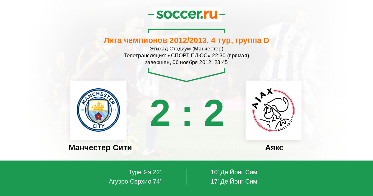 Манчестер Сити - Аякс: обзор матча 6 ноября 2012