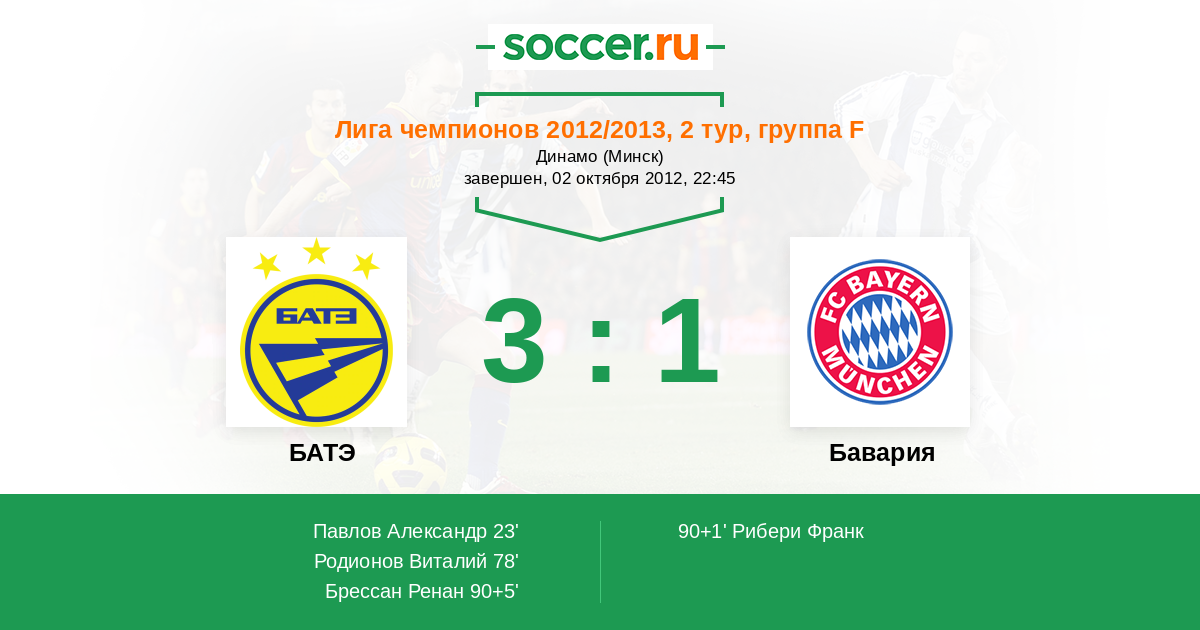 БАТЭ - Бавария: обзор матча 2 октября 2012