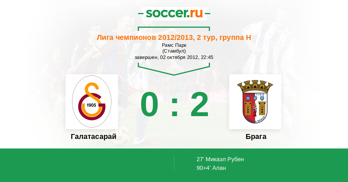 Галатасарай - Брага: обзор матча 2 октября 2012