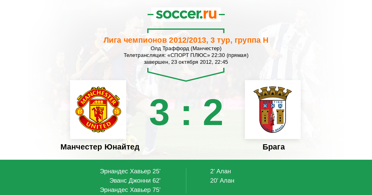 Манчестер Юнайтед - Брага: обзор матча 23 октября 2012