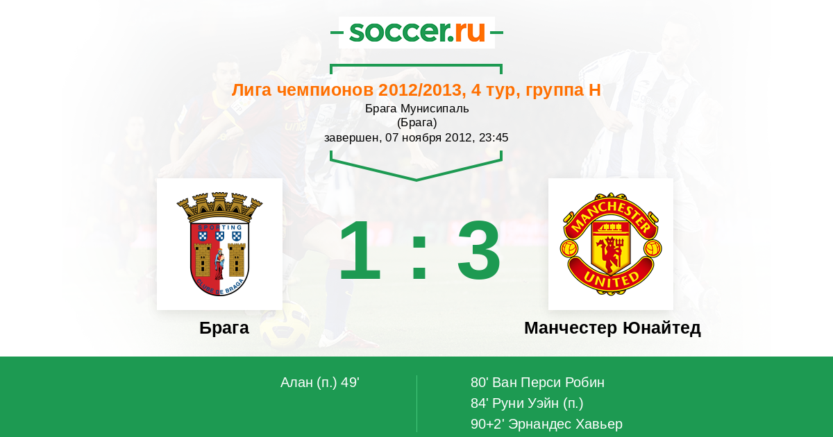 Брага - Манчестер Юнайтед: обзор матча 7 ноября 2012