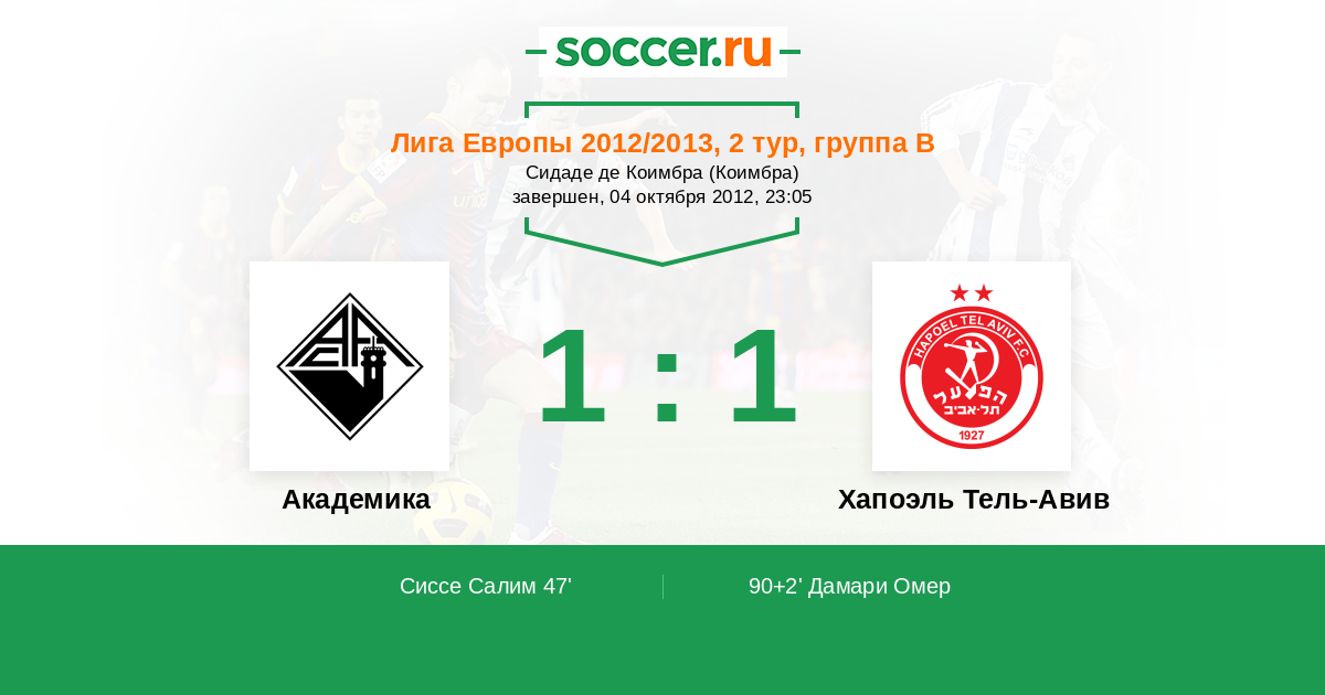Академика - Хапоэль Тель-Авив: обзор матча 4 октября 2012