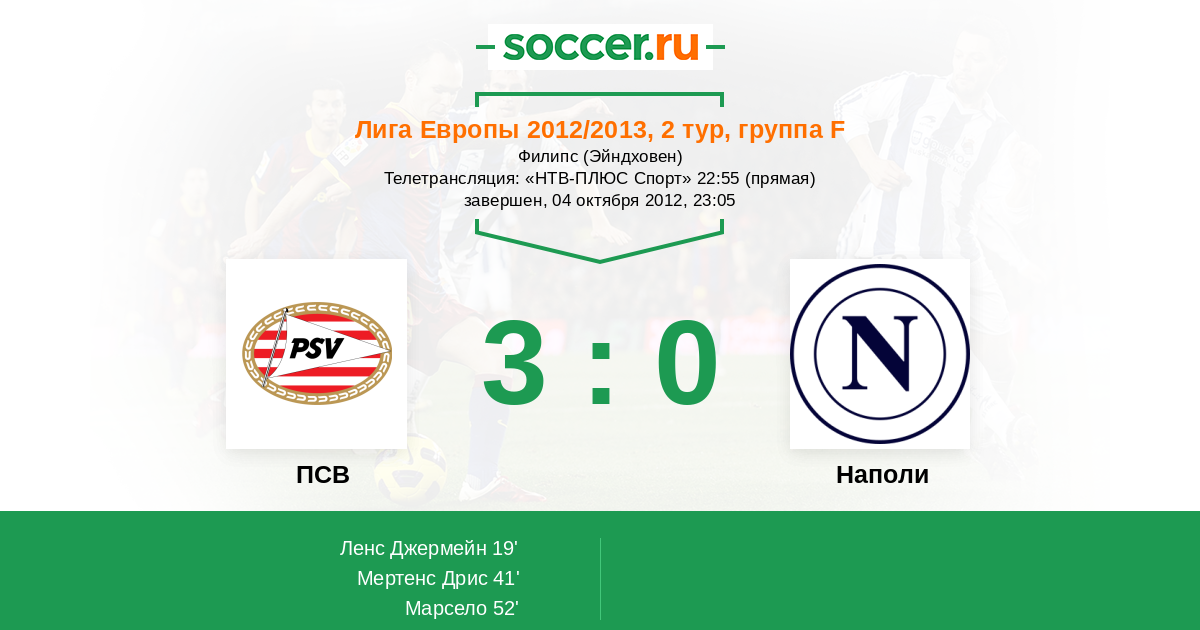 Мы приветствуем Вас на матче 2-го тура группового этапа Лиги Европы, в котором ПСВ принимает "Наполи". Прямую текстовую трансляцию проведет комментатор Soccer.Ru Антон Сазонтов. Добро пожаловать!