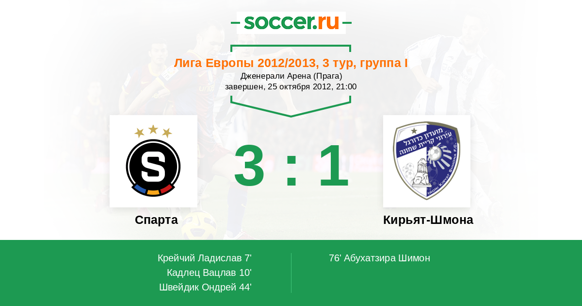 Спарта - Кирьят-Шмона: обзор матча 25 октября 2012