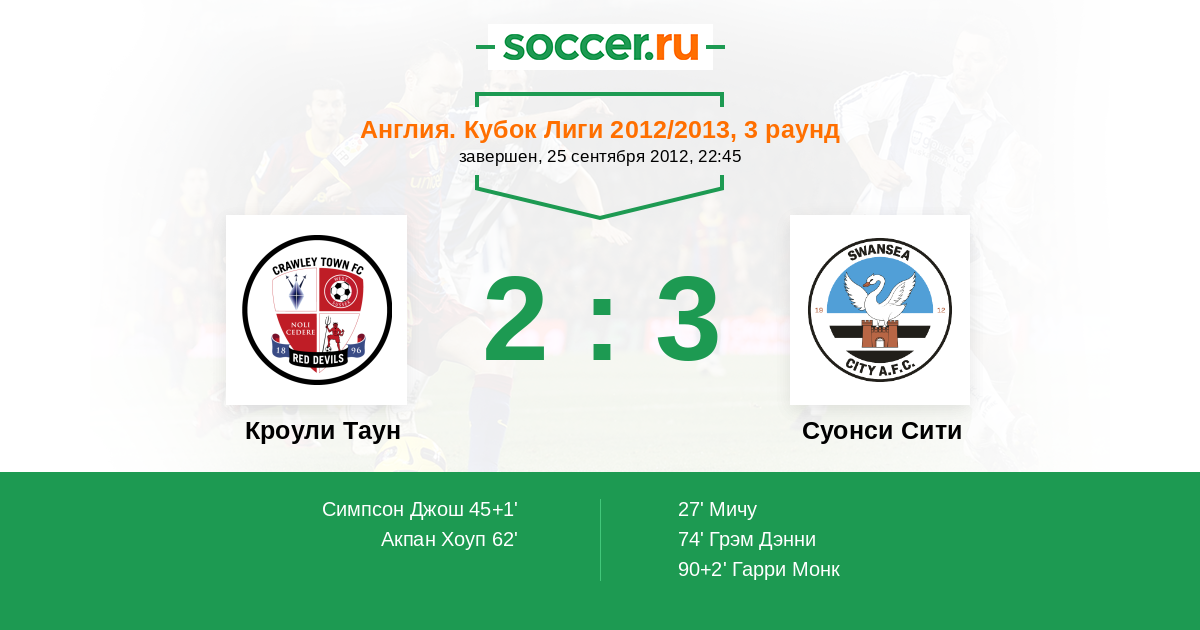 Кроули Таун - Суонси Сити: обзор матча 25 сентября 2012