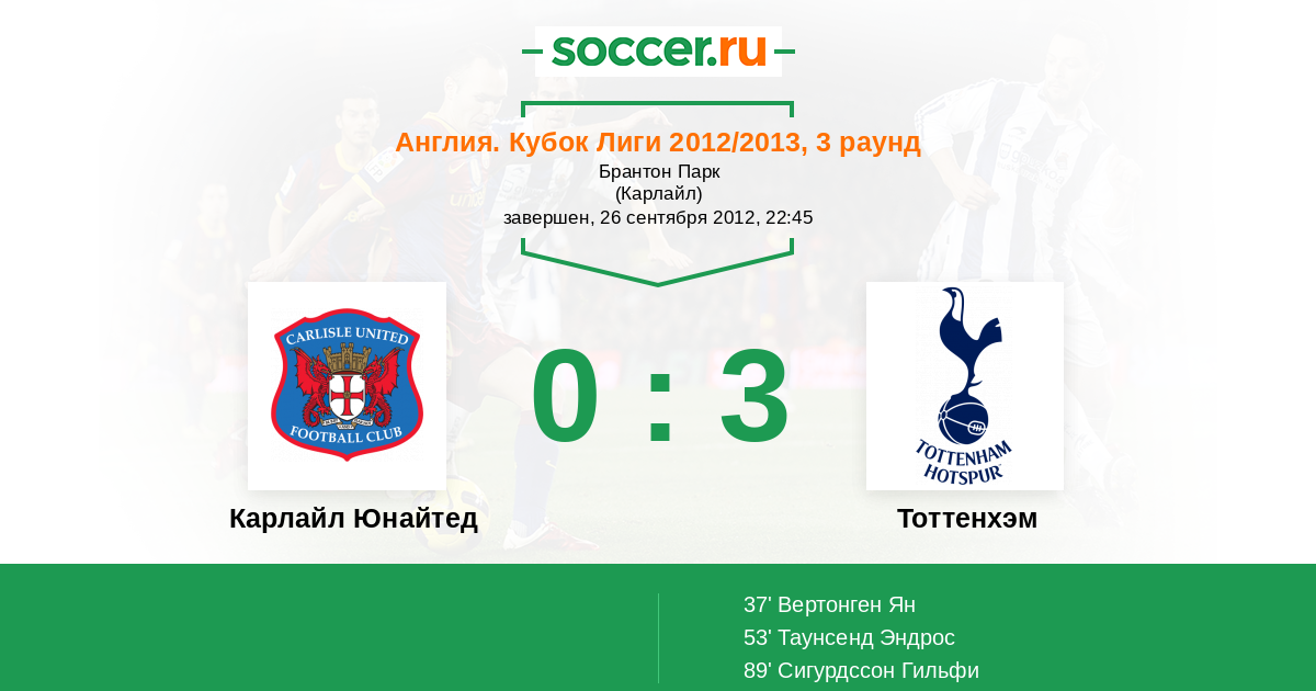 Карлайл Юнайтед - Тоттенхэм: обзор матча 26 сентября 2012