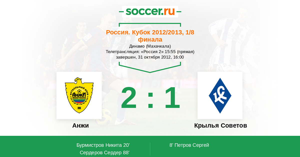 Анжи - Крылья Советов: обзор матча 31 октября 2012