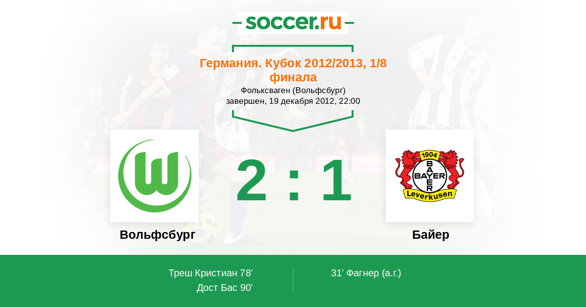 Вольфсбург - Байер: обзор матча 19 декабря 2012