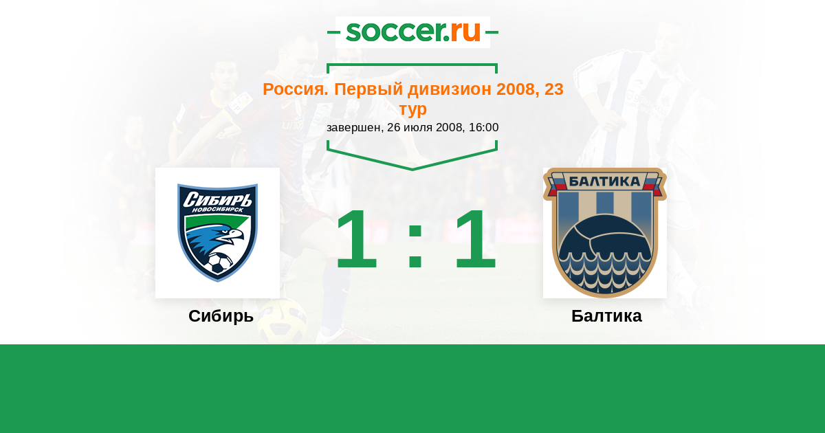 Сибирь - Балтика: обзор матча 26 июля 2008