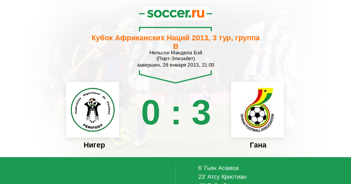 Нигер - Гана: обзор матча 28 января 2013