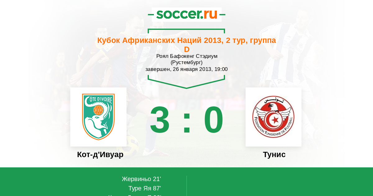 Кот-д'Ивуар - Тунис: обзор матча 26 января 2013