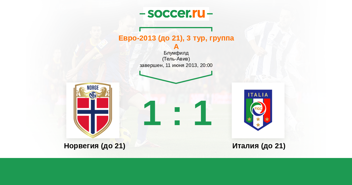 Норвегия (до 21) - Италия (до 21): обзор матча 11 июня 2013