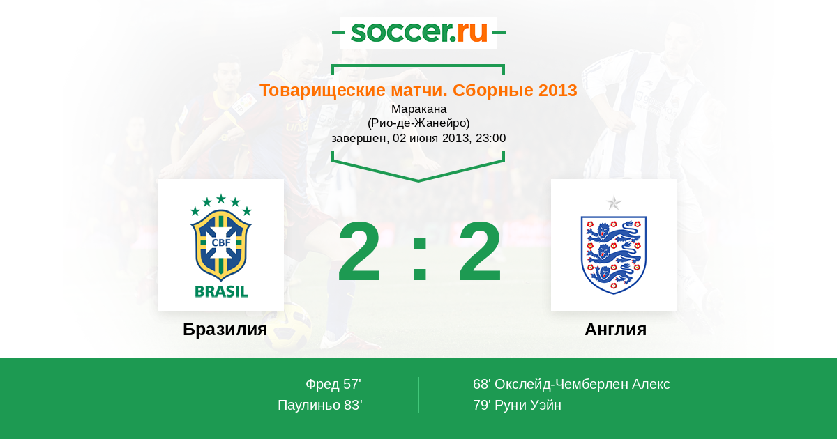 Бразилия - Англия: обзор матча 2 июня 2013