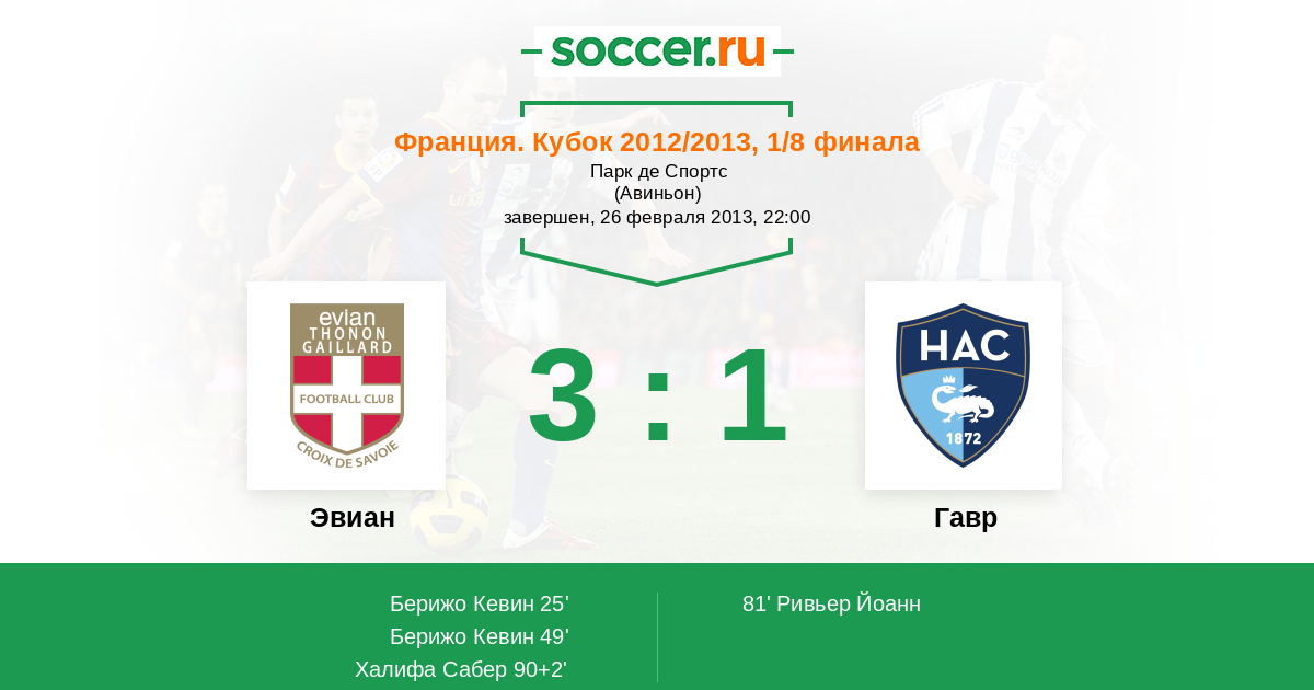 Эвиан - Гавр: обзор матча 26 февраля 2013