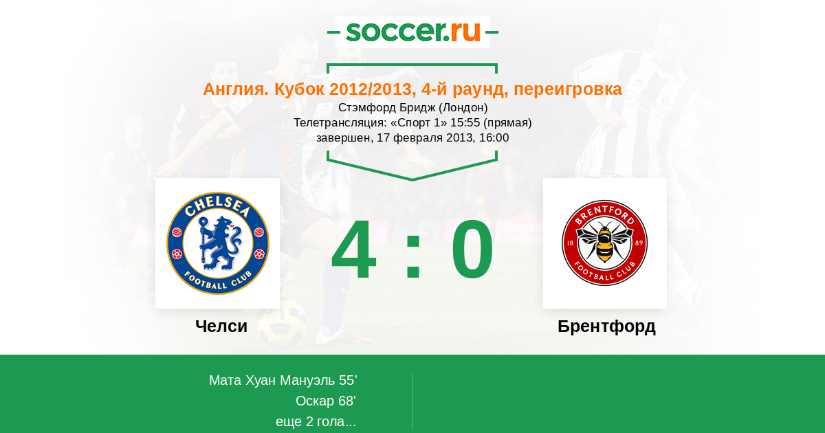 Челси - Брентфорд: обзор матча 17 февраля 2013
