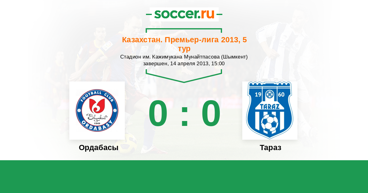 Ордабасы - Тараз: обзор матча 14 апреля 2013