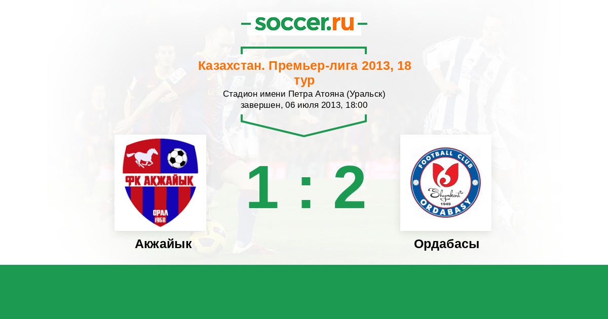 Акжайык - Ордабасы: обзор матча 6 июля 2013