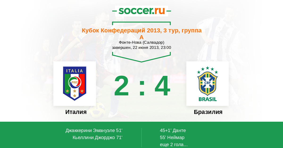 Италия - Бразилия: обзор матча 22 июня 2013