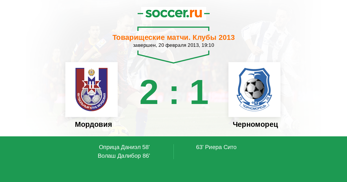 Мордовия - Черноморец: обзор матча 20 февраля 2013