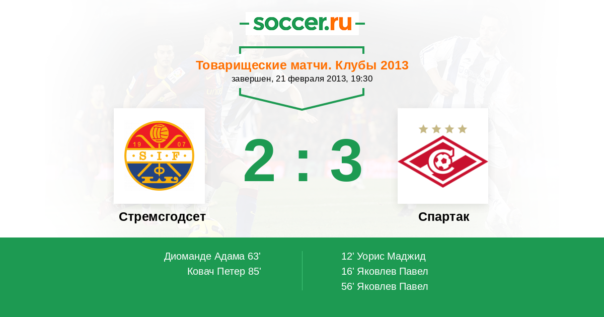 Стремсгодсет - Спартак: обзор матча 21 февраля 2013