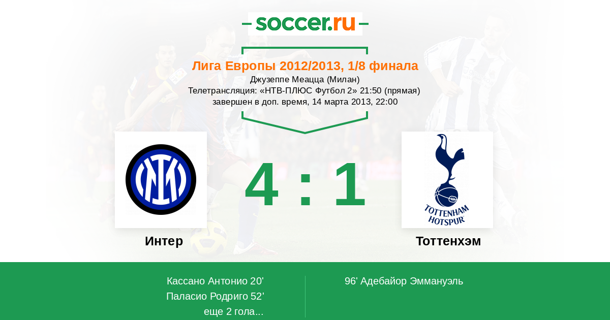 Интер - Тоттенхэм: обзор матча 14 марта 2013