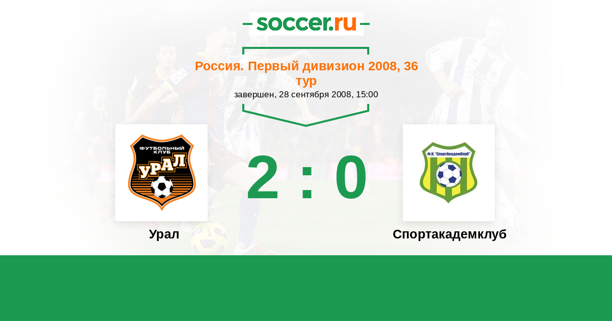 Урал - Спортакадемклуб: обзор матча 28 сентября 2008