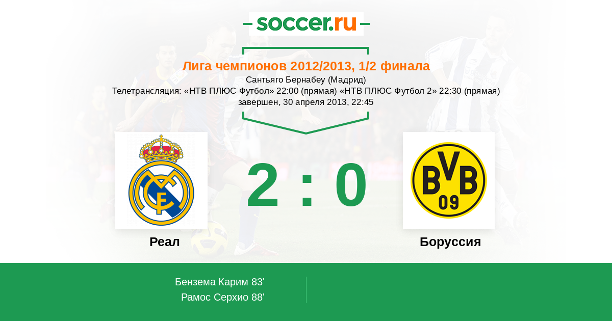 Реал - Боруссия: обзор матча 30 апреля 2013