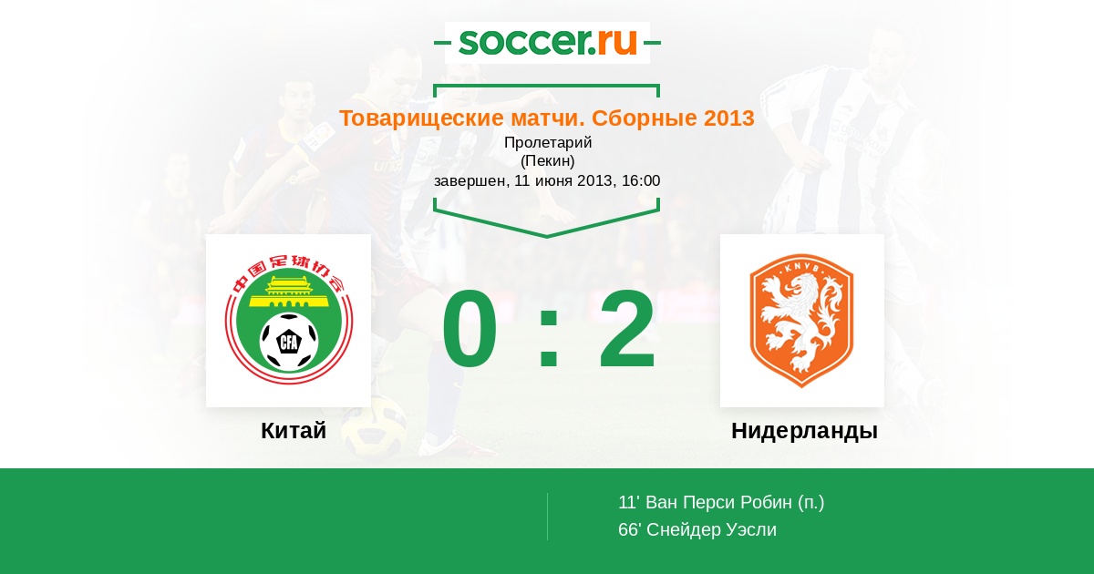 Китай - Нидерланды: обзор матча 11 июня 2013