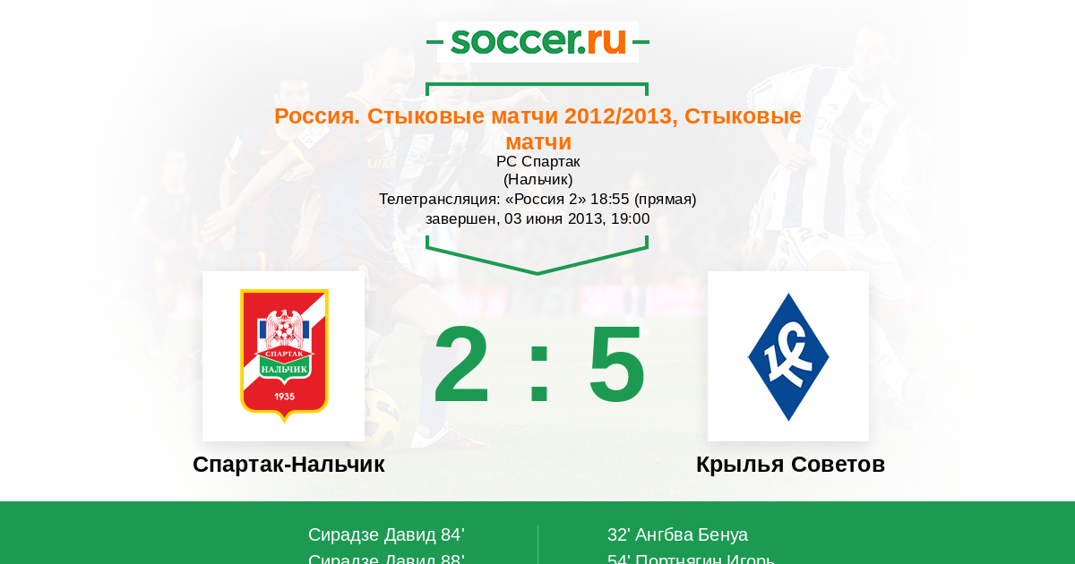 Нальчик, РС Спартак Телетрансляция: "Россия 2" 18:55 (прямая)