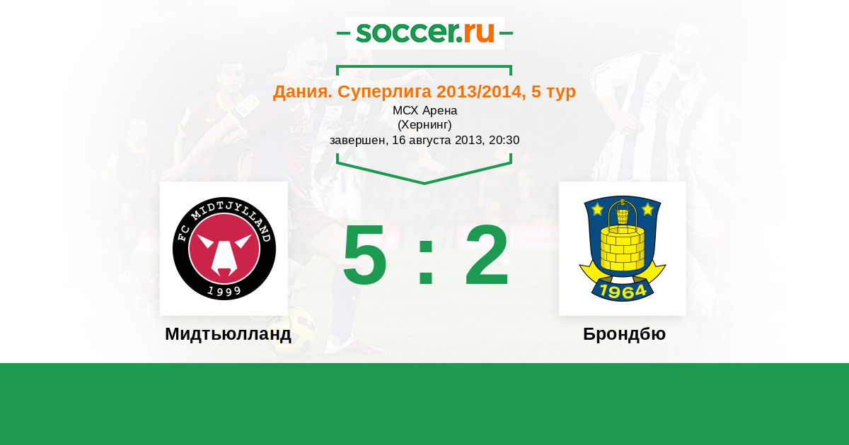 Мидтьюлланд - Брондбю: обзор матча 16 августа 2013