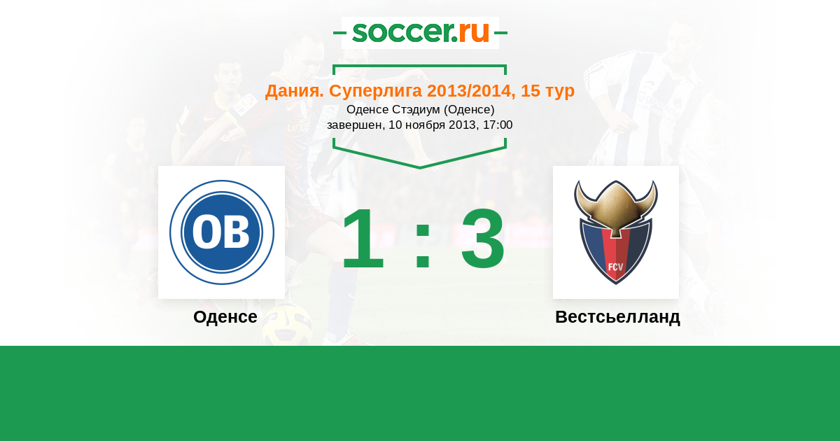 Оденсе - Вестсьелланд: обзор матча 10 ноября 2013