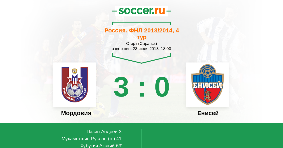 Мордовия - Енисей: обзор матча 23 июля 2013