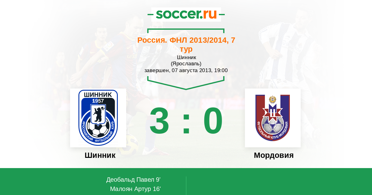 Шинник - Мордовия: обзор матча 7 августа 2013
