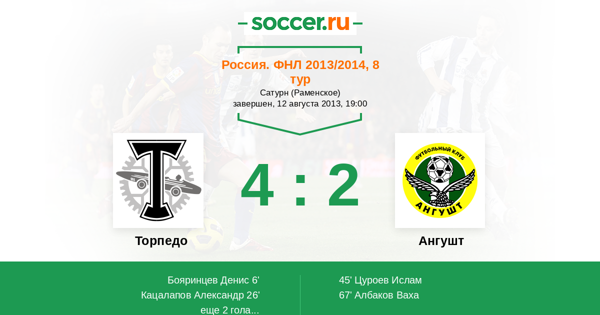 Торпедо - Ангушт: обзор матча 12 августа 2013