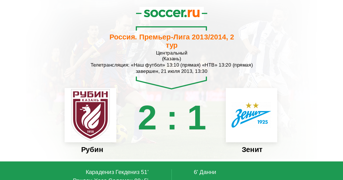 Казань, Центральный Телетрансляция: "Наш футбол" 13:10 (прямая) "НТВ" 13:20 (прямая)