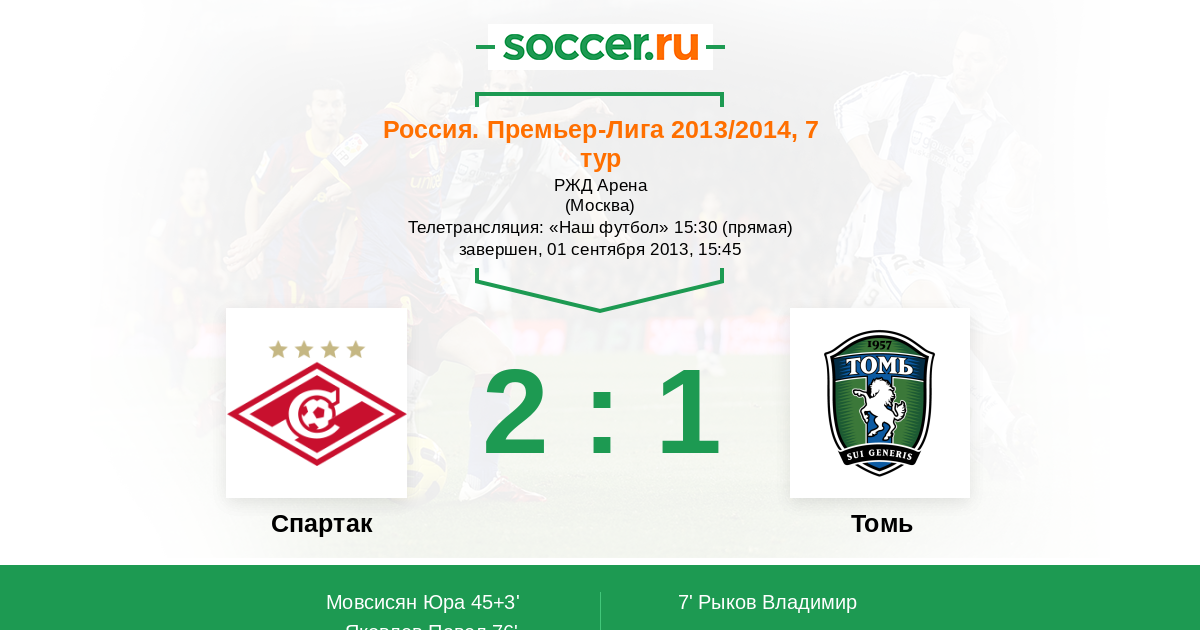 Спартак - Томь: обзор матча 1 сентября 2013