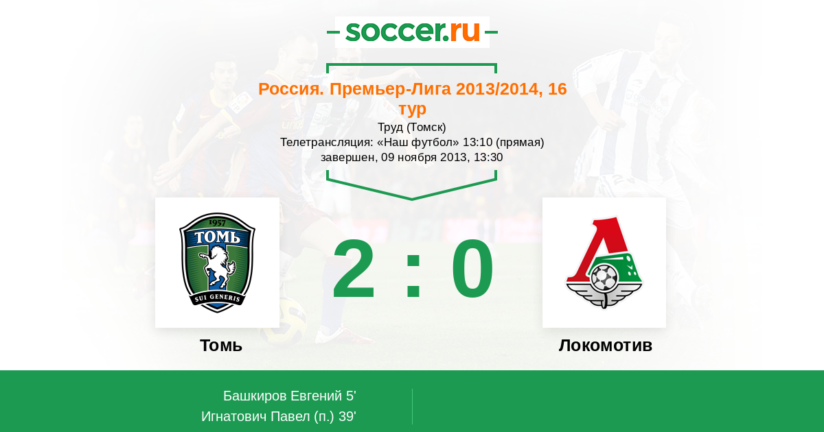 Томь - Локомотив: обзор матча 9 ноября 2013