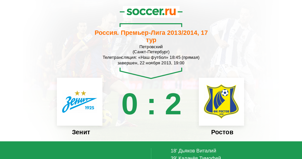 Зенит - Ростов: обзор матча 22 ноября 2013