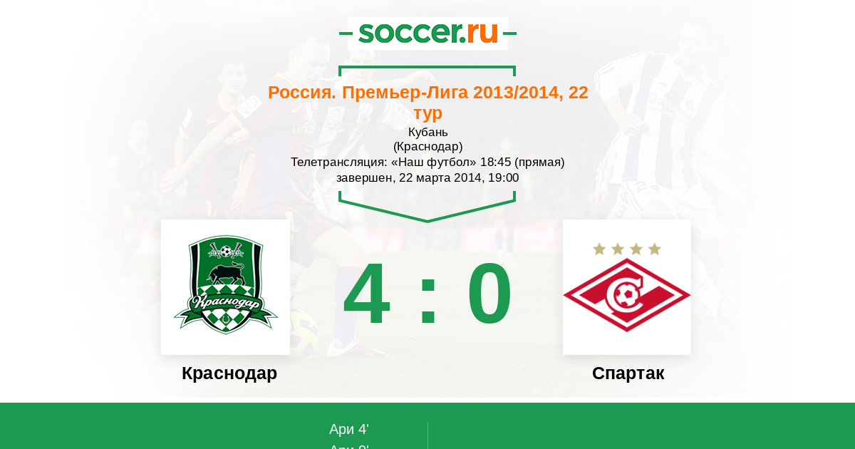 Краснодар - Спартак: обзор матча 22 марта 2014