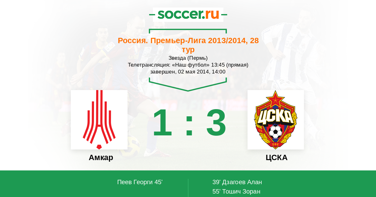 Амкар - ЦСКА: обзор матча 2 мая 2014