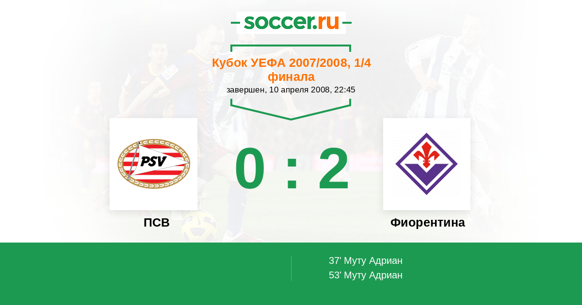 ПСВ - Фиорентина: обзор матча 10 апреля 2008