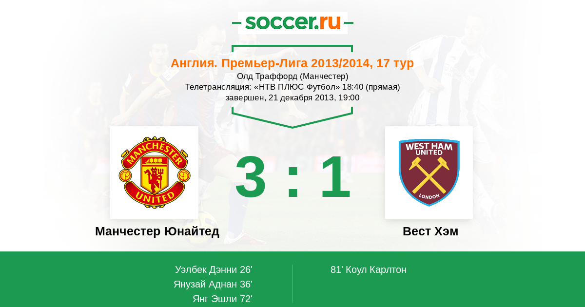 Манчестер Юнайтед - Вест Хэм: обзор матча 21 декабря 2013