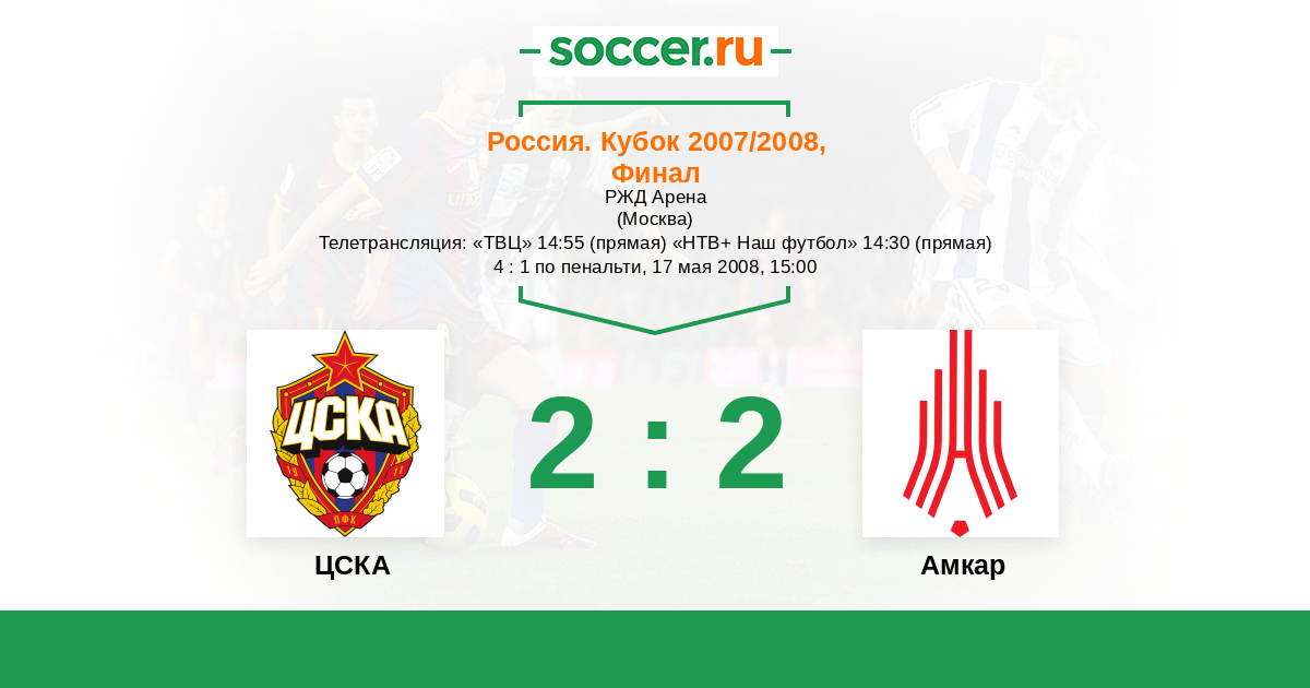 Москва, РЖД Арена Телетрансляция: "ТВЦ" 14:55 (прямая) "НТВ+ Наш футбол" 14:30 (прямая)