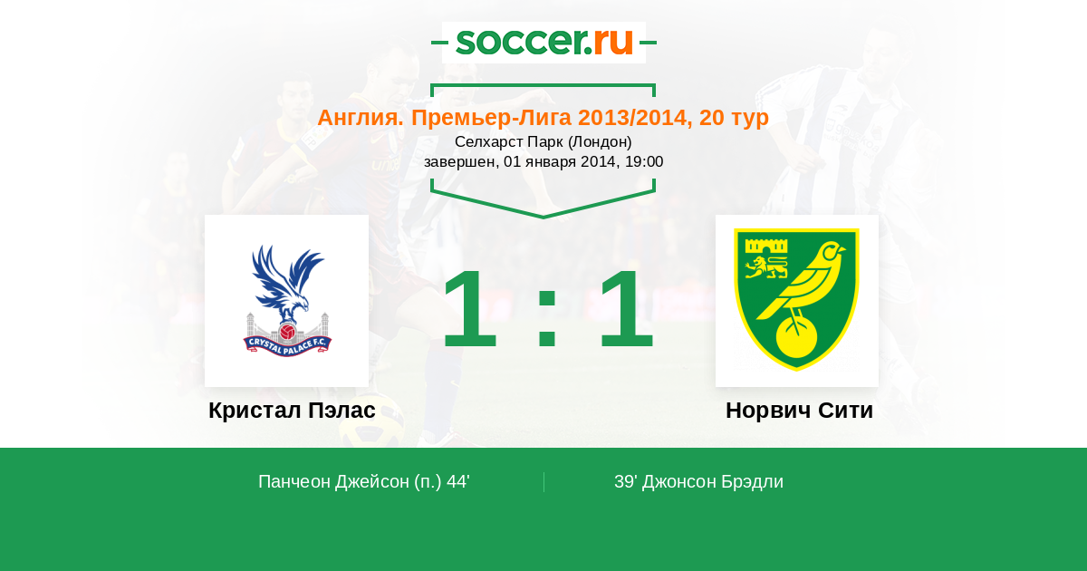 Кристал Пэлас - Норвич Сити: обзор матча 1 января 2014