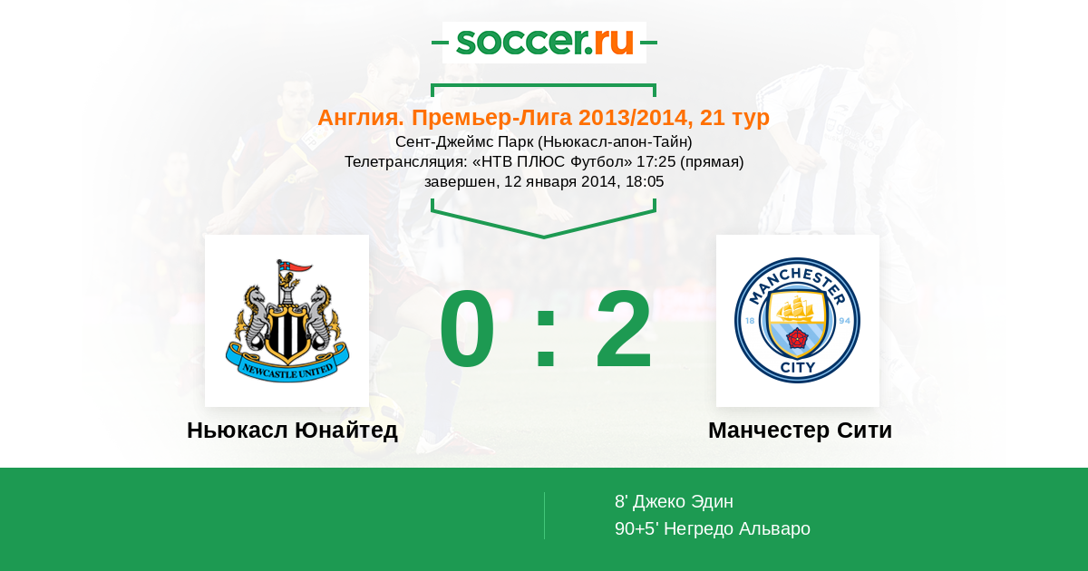 Ньюкасл-апон-Тайн, Сент-Джеймс Парк Телетрансляция: "НТВ ПЛЮС Футбол" 17:25 (прямая)