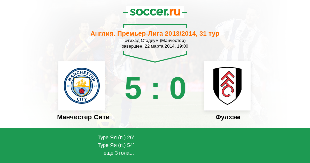 Манчестер Сити - Фулхэм: обзор матча 22 марта 2014