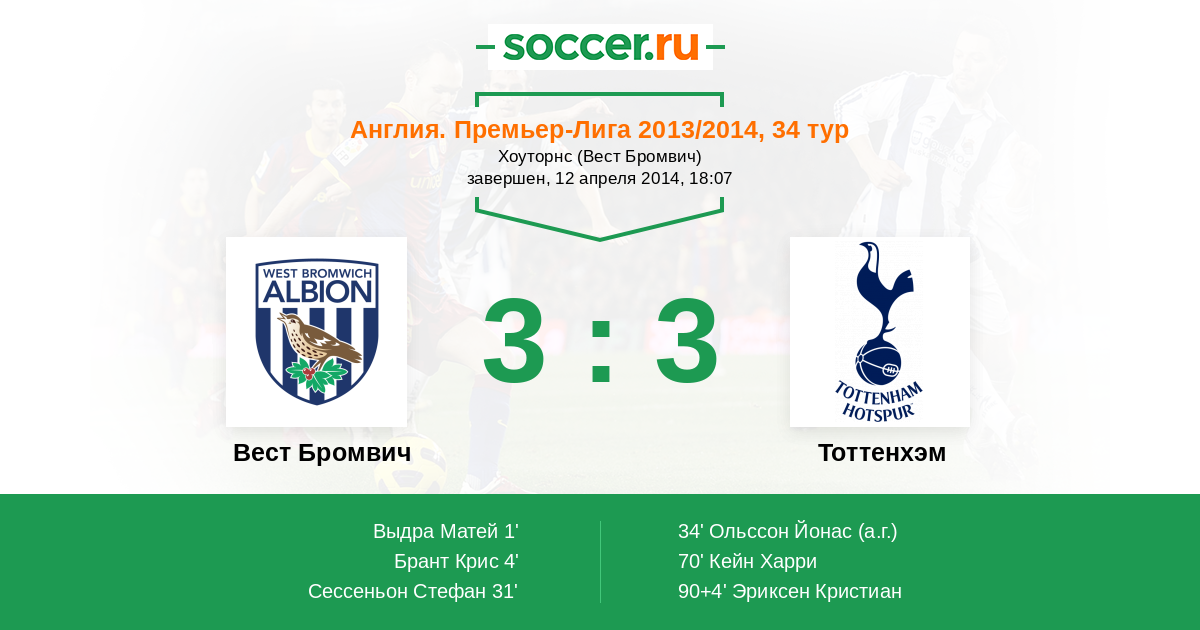 Вест Бромвич - Тоттенхэм: обзор матча 12 апреля 2014