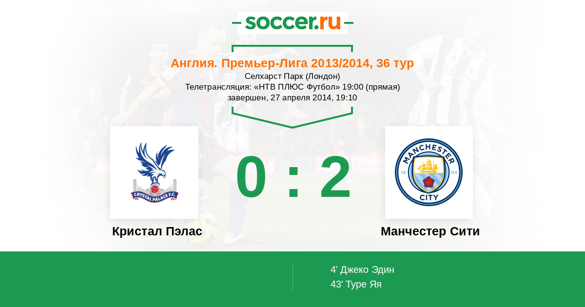 Кристал Пэлас - Манчестер Сити: обзор матча 27 апреля 2014