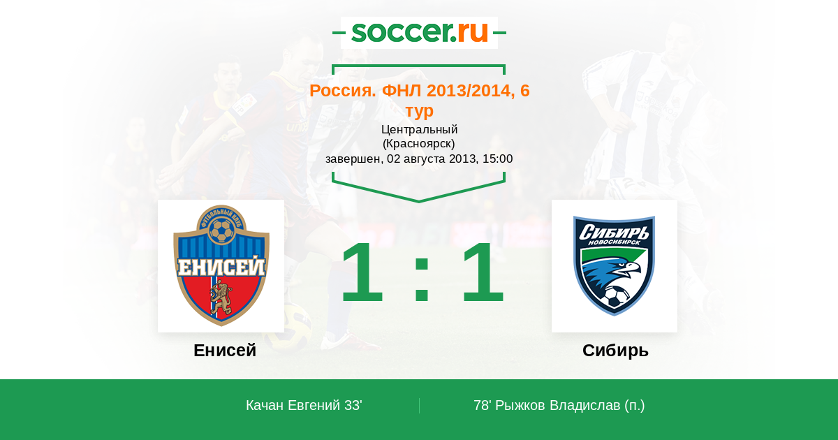 Енисей - Сибирь: обзор матча 2 августа 2013