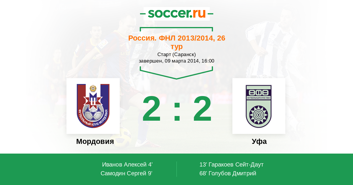 Мордовия - Уфа: обзор матча 9 марта 2014